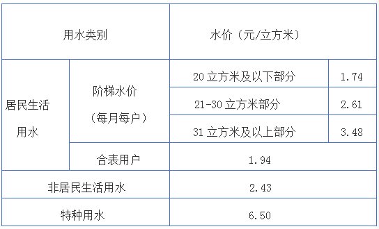 实行两月一抄的居民阶梯用户,每期用水在40立方米以下部分,水价标准为1.74元/立方米;41-60立方米部分,水价标准为2.61元/立方米;61立方米及以上部分,水价标准为3.48元/立方米。