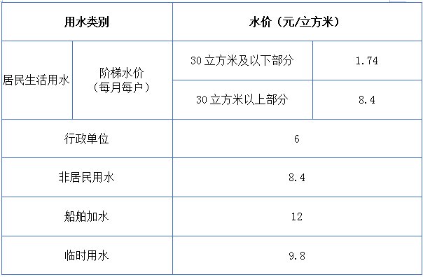 备注:自2020年12月1日起,根据《关于调整海岛居民生活用水价格的通知》(珠万管[2020]29号)下调居民生活用水价格,其余供水价格不变。