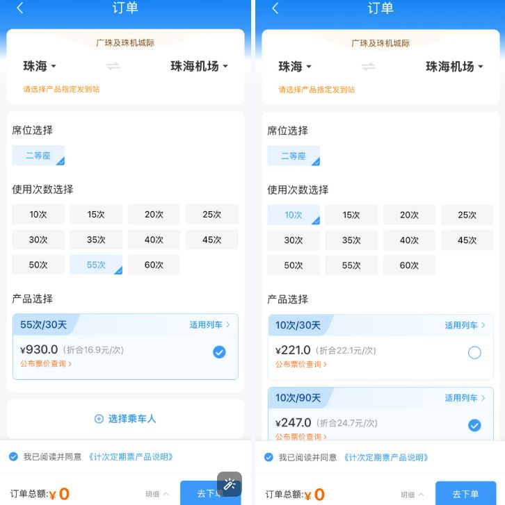 3月25日珠机城际、广珠城际新推出了10款月票和1款次票,共计11个票制产品,调整计价方式后,月票折扣范围在8.5折至6.2折,次票折扣为9.5折