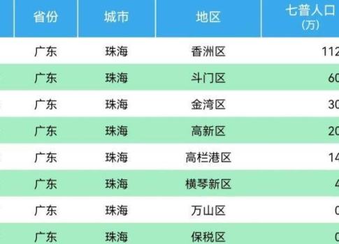 珠海市面积有1,688平方千米,人口141.57万人(2005年统计),是广东省人口规模最小的城市,人口分布为:香洲区 81万人,斗门区 36万人,金湾区 24万人,人口密度为:全市人口密度为839人/平方公里,其中香洲区 1401人/平方公里,斗门区 595人/平方公里,金湾区 477人/平方公里;当中约有80万为永久居民。珠海的海岸线长604公里,有大小岛屿146个,故有“百岛之市”的美誉。在珠江口辽阔的水域上,大大小小的岛屿星罗棋布,计有146个,其中大部分集中于东部海域的万山群岛。