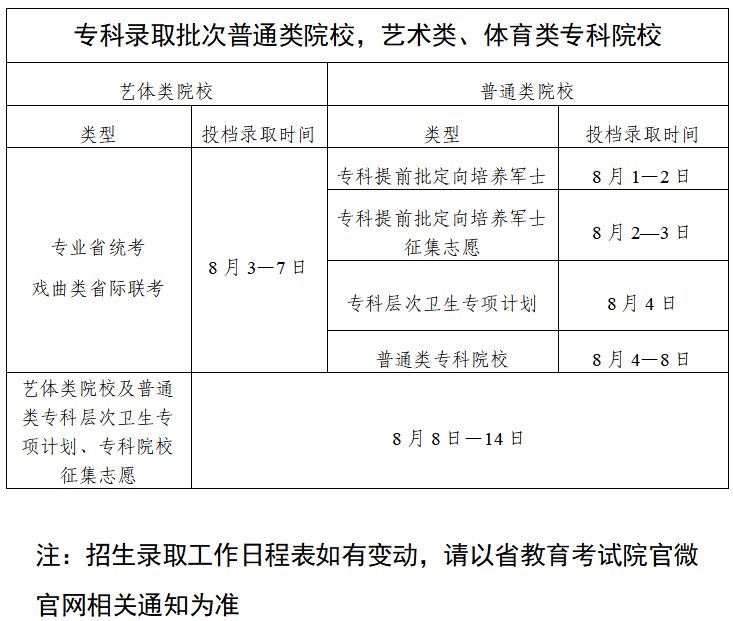 4. "征集志愿": - 征集志愿时间一般在各批次录取结束后进行,具体时间根据录取情况确定。