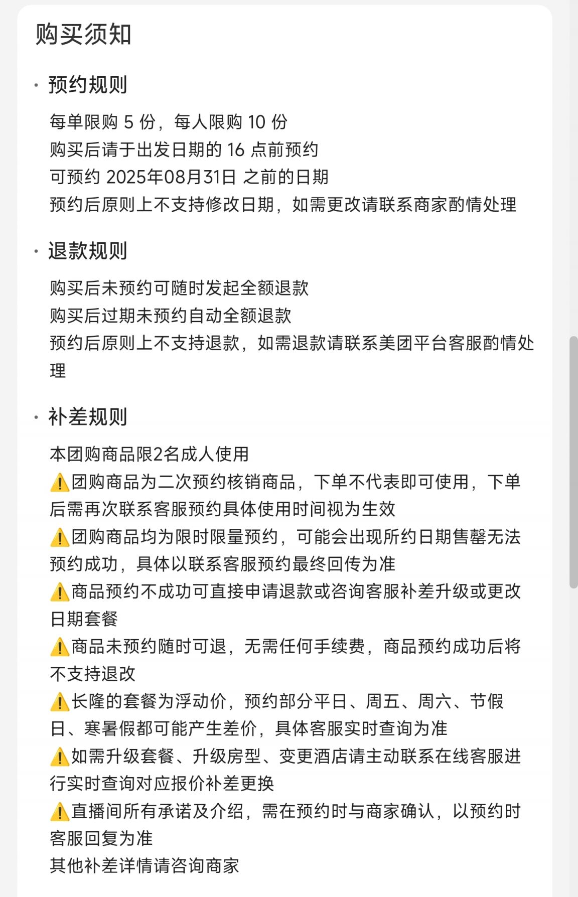 加价规则:爆款产品~部分热门日期预约时可能需补差价